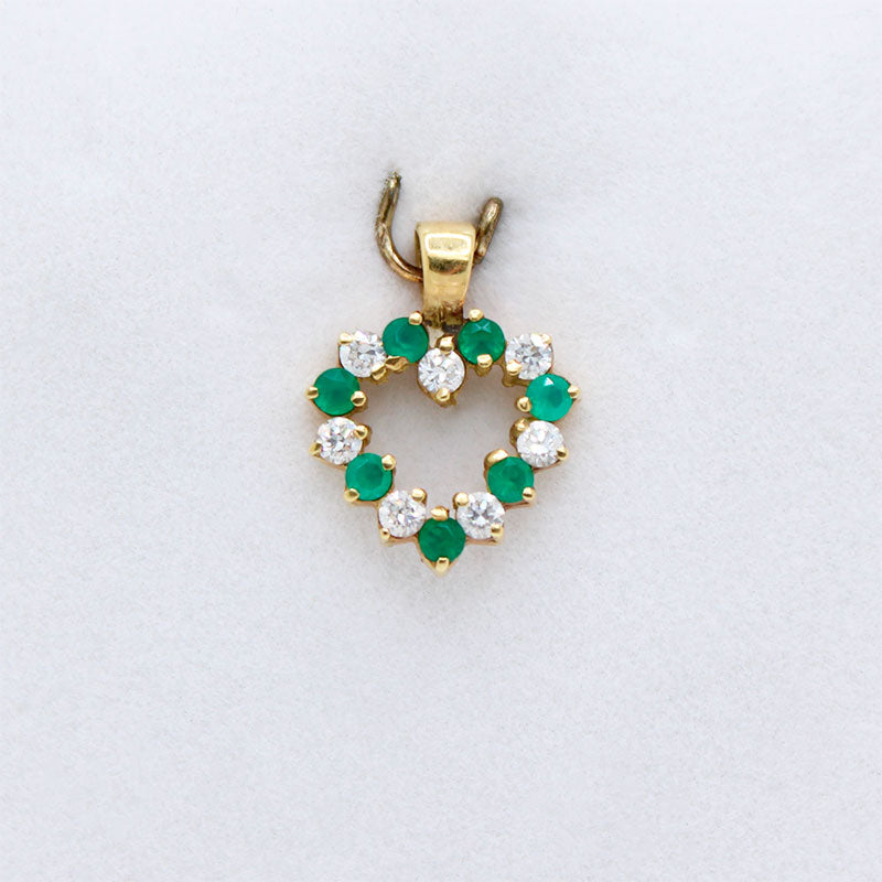 Dije Forma de Corazón en Oro 18k, Brillantes y Esmeraldas